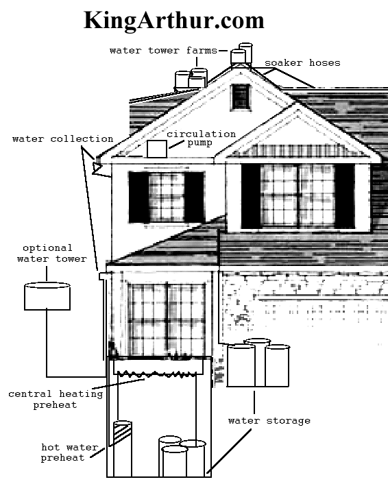 By collecting rainwater and dripping it over the roof on hot days, the heat energy can be transferred away from the house through evaporation.